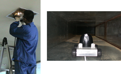 (1)用清洗設備中的攝像監控系統對清洗前后的風道實行監控錄像,以目測形式直接檢測風道清洗效果。