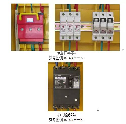 11、分配電箱應裝設總隔離開關、分路隔離開關以及總斷路器、分路斷路器或總熔斷器、分路熔斷器。其設置和選擇應符合前面總配電箱的要求(JGJ46-2005第8.2.4條)