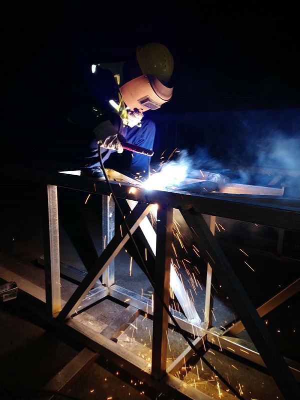 星澤人真是好樣的!我們來到了江西萍鄉甘源食品有限公司,該公司對星澤公司是情有獨鐘,去年的幾次投標當中由于價格的原因都沒有選擇我們公司中標,這次招標的負責同志跟我們總經理說,非常希望我們能夠跟他們合作。但還是因為價格的問題和合同條款不被我們接受問題被我公司謝絕了,4月29號當晚,甲方再次找到我方商量愿意修改合同和調整一點價格,雙方于30日便達成了協議,合同造價近佰萬元,并取得了合同簽訂支付50%的工程款優越條件,這可是在現金為王的當下,少有的最優秀的甲方。應客戶的要求,我們5月2日組織進場施工改造,該項目的特點是:廠區改造點多面廣,涉及工藝系統多,有供氮、供水、供汽、供壓縮氣、供物料等管道及閥門控制系統,每個系統工作量相對而言又不多,且安裝施工要與生產同時進行,并且要保證一個月之內完成任務,現場最重要的是施工防護(安全防護、環境防護),管道全部采用不銹鋼管道,要求對焊口進行10%的抽檢探傷,焊縫等級為三級,質量要求高,防疫管理嚴格,戴著口罩勞動,令人感到壓力很大。安裝隊伍選派在公司歷年施工表現優秀和經驗豐富的李國雄班組,他們忠勇老成,任勞任怨,技術精干,授命以后立即出發,連續五一幾天的加班已經完成了計劃的幾個工藝段。夜晚的焊光擾動了星空的寂靜,飛舞的焊花,劃出了青春最縵妙的彩虹,晶瑩的汗珠閃爍著生命最炫麗的樂章。客戶看在眼里,喜在心里,十分滿意,項目經理謝佳說:“雖然事情繁瑣,但一定能夠保證完成任務,給客戶一個十分滿意”。