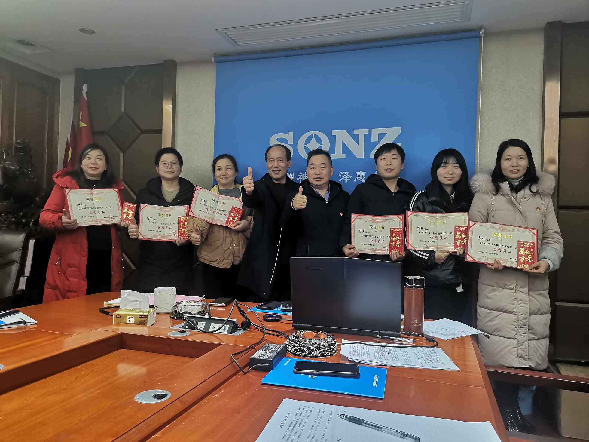 會上首先聽取了各參會人員的年度述職報告,孫總對所有述職員工的年度工作進行了點評,有肯定,也有鼓勵,也提出了新的希望,會上還表彰了優秀部門經理和優秀個人。