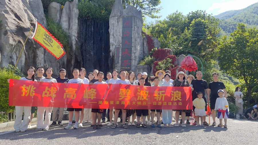 7月26日清晨,在“挑戰高峰,劈波斬浪”的醒目橫幅下,湖南星澤 公司管理部全體員工攜家屬奔赴瀏陽周洛大峽谷,用一場清涼而澎湃的團建,把口號寫進了山谷與浪花。