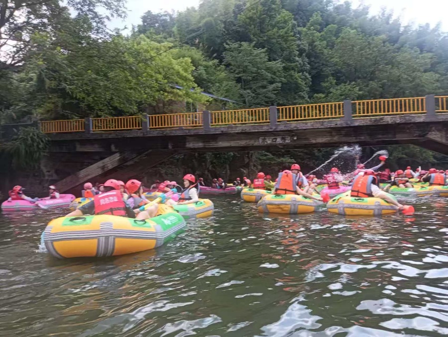 下午的重頭戲是漂流。皮艇剛下水就被浪花澆成落湯雞,大家干脆放棄“防御”,水槍、頭盔、安全帽全改成武器,認識不認識的都加入混戰。一個半小時后,全員濕漉漉上岸,嗓子喊啞,臉笑酸。