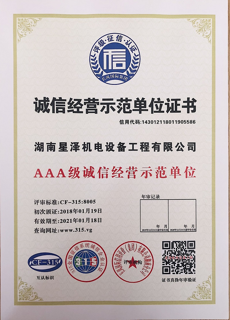 國家權(quán)威機(jī)構(gòu)通過認(rèn)證、審查針對我公司的信用記錄、經(jīng)營狀況、財務(wù)指標(biāo)、發(fā)展前景,結(jié)合國家及地方政府相關(guān)政策及現(xiàn)狀、本著公平、公正、獨立、客觀、科學(xué)的原則,評定我公司綜合信用等級為:AAA級