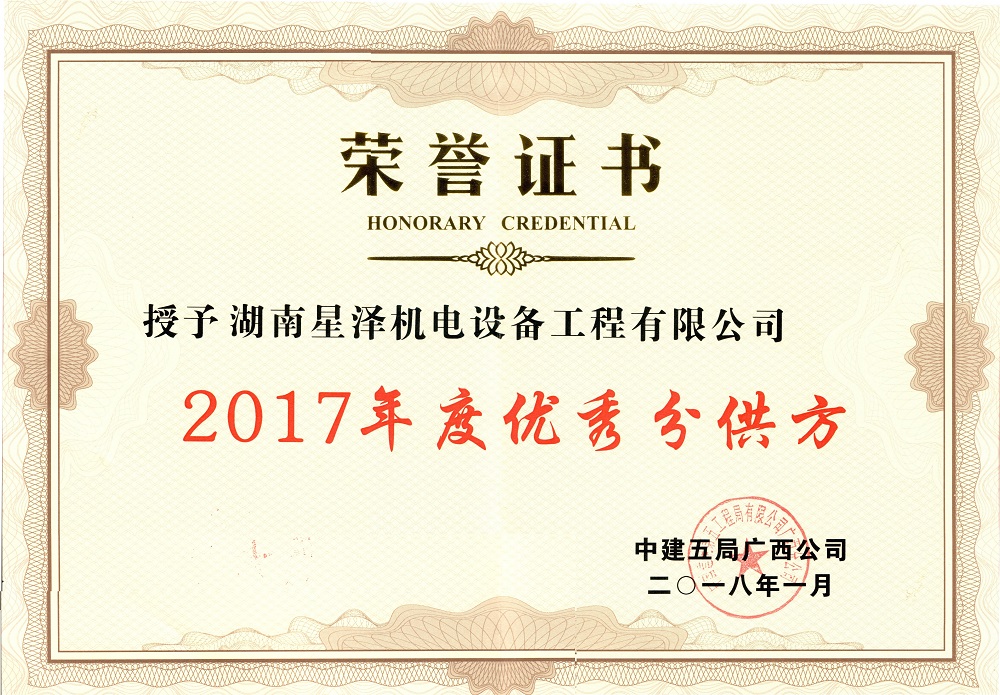 2018年,1月,我司憑借專業的施工水平、科學的項目管理模式以及積極良好的服務態度,被中建五局廣西分公司評為優秀分供方!